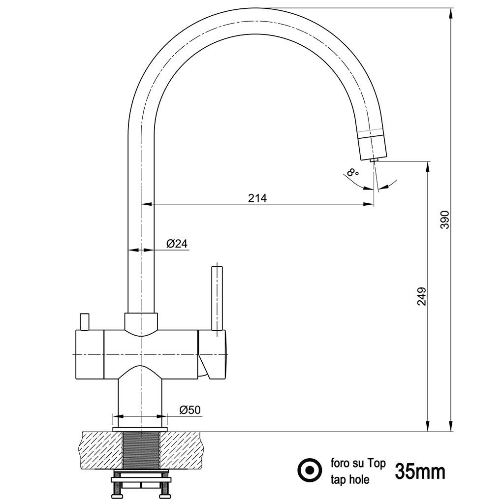 • Für die Montage wird in der Arbeitsplatte / Spüle ein Loch mit Ø 35 mm benötigt.