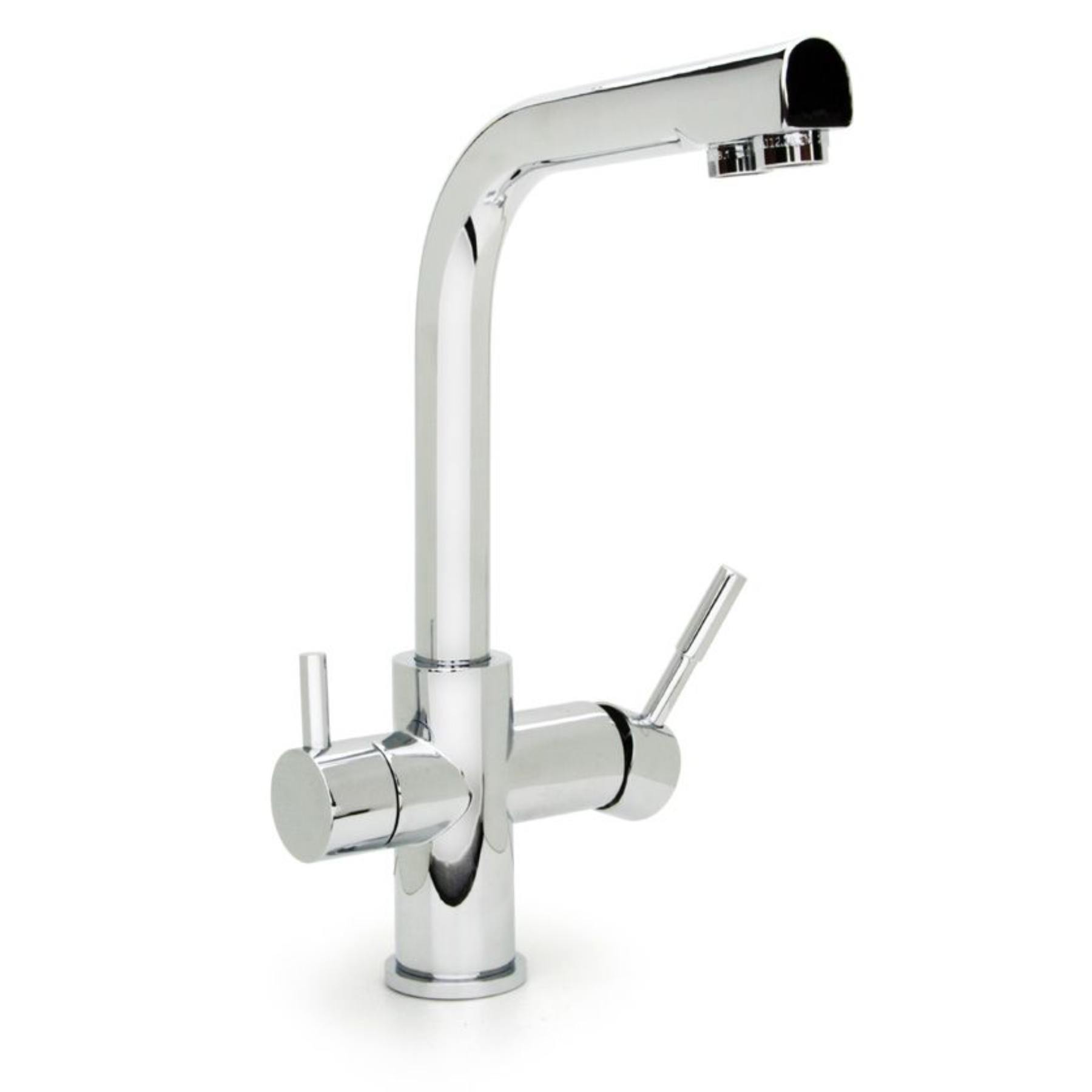 Das Modell Verona ist eine hochwertige und funktionelle 3-Wege-Armatur für Kalt-, Warm- und Filter-Wasser. Mit dem größeren Mischhebel reguliert man das ungefilterte Wasser warm und kalt und mit dem kleineren Regler die Entnahme des gefilterten Trinkwassers. So hast du Filter- und Brauchwasser in nur einer Armatur – für maximalen Komfort. Dank des hohen Auslaufs fällt auch das Befüllen größerer Gefäße besonders leicht.