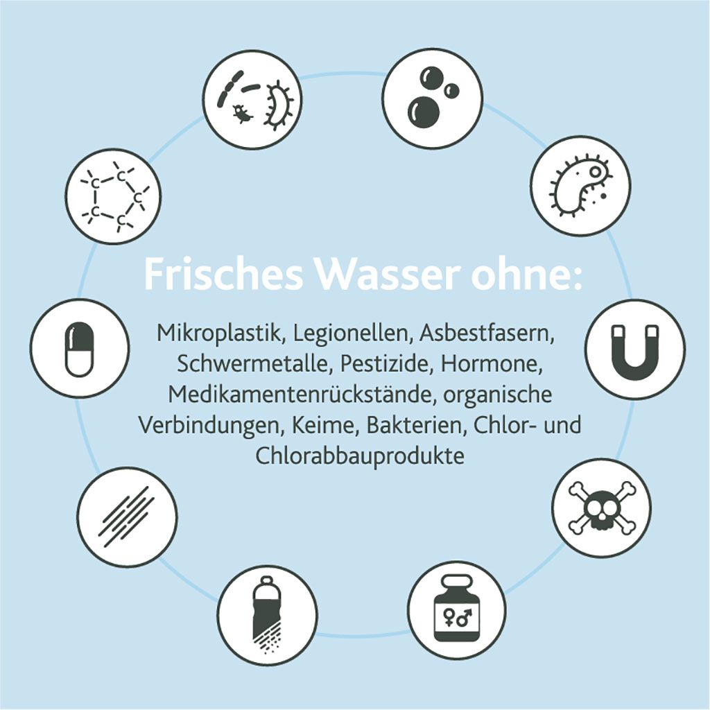 Diese Technologie beseitigt auch unangenehme Gerüche und Verunreinigungen, die den Geschmack und die Qualität des Wassers beeinträchtigen. Schwermetalle werden zuverlässig entfernt – für ein frisches und sicheres Trinkerlebnis.